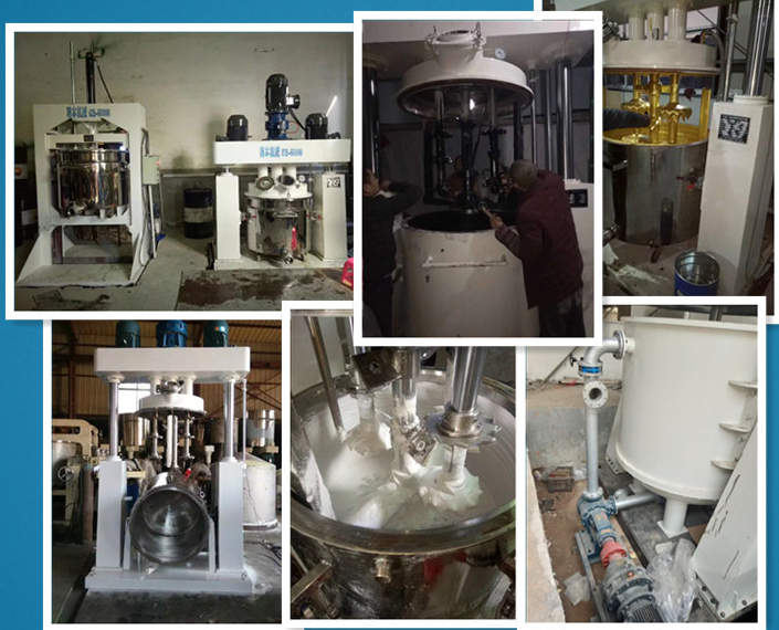 是一種多功能、強(qiáng)制性攪拌機(jī),釜內(nèi)有三根不同形式的攪拌器,其中一根低速攪拌器在繞釜體軸線轉(zhuǎn)動,其余兩根高速攪拌裝置又以不同的轉(zhuǎn)速繞自身軸線高速自轉(zhuǎn),使物料在釜內(nèi)作復(fù)雜的運(yùn)動,受到強(qiáng)烈的剪切和混合。設(shè)備內(nèi)山形刮壁刀繞釜體軸線轉(zhuǎn)動,將粘在壁上和底部的原料刮出參與混合,使其效果更為理想。設(shè)備密封性好,可電加熱(水冷卻)抽真空,具有良好的排氣除泡。強(qiáng)力分散機(jī)缸蓋可液壓升降,缸體可自由移動,操作十分方便。強(qiáng)力分散機(jī)攪拌器的形式,根據(jù)物料要求可為多層槳葉式、框式、蝴蝶式、葉輪式等。攪拌機(jī)通常配套系列液壓擠出機(jī),以實(shí)現(xiàn)膏狀物料的擠出。